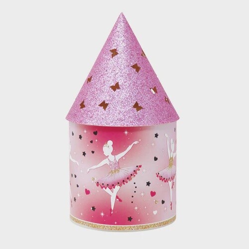 This soft illuminating light-up LED Lantern is designed to comfort children as they sleep. Switched on, watch as the light smoothly transitions between a rainbow of colours illuminating a dark room. Switched off it acts as a decorative piece with a glitter roof displaying beautiful illustrations inspired by Classical Ballet. Completely safe for little hands all day and all night long.